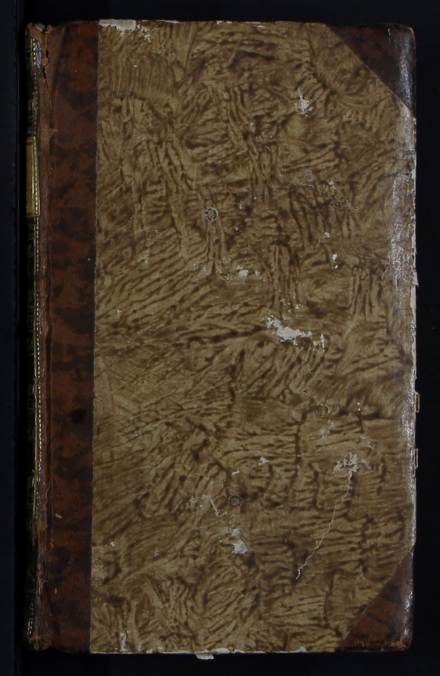 Экземпляр в полукожаном переплёте: коричневая кожа, картон, декоративная бумага на переплётных крышках и форзацах, золотое тиснение на корешке, тонированный (красный) обрез.